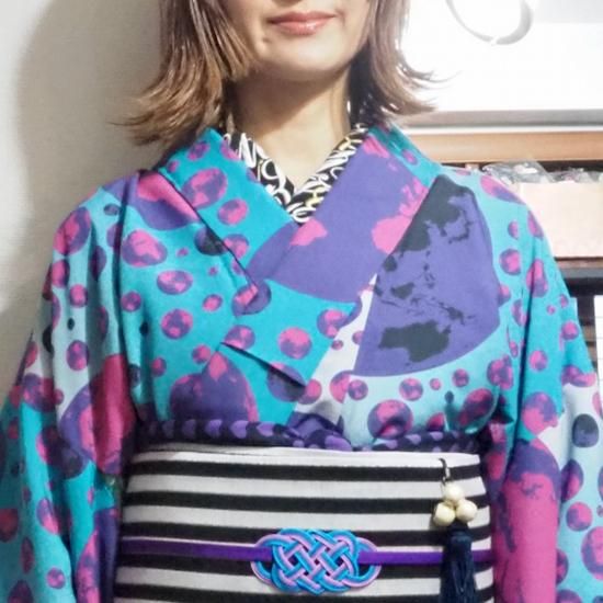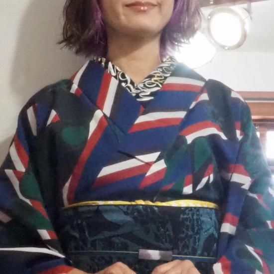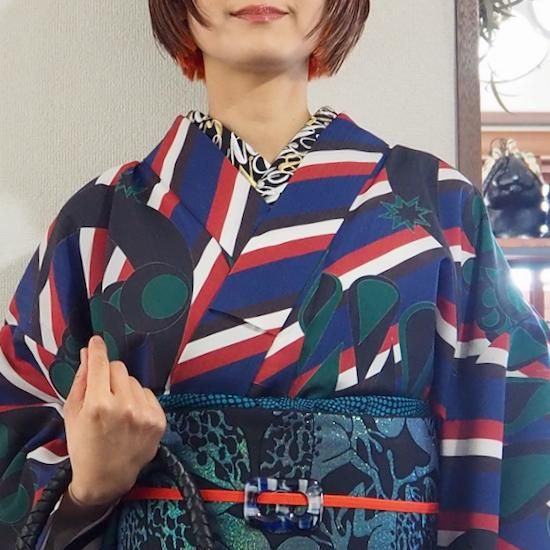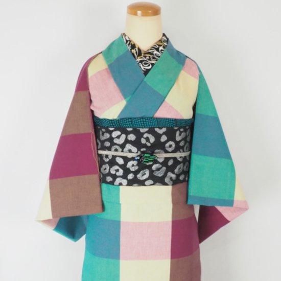 (右上)ポリエステルプレタ着物【ボタニカルレインボー】単衣/袷