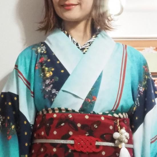 ツヤと発色が美しい生地は、正絹の着物にもマッチする高級感があります。