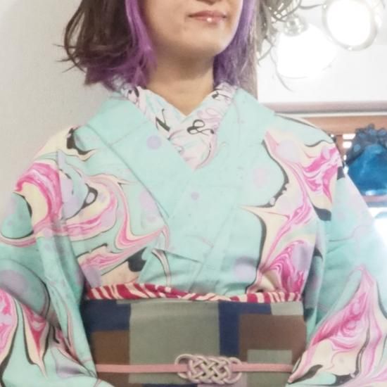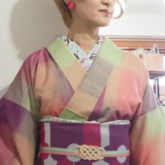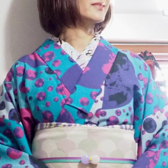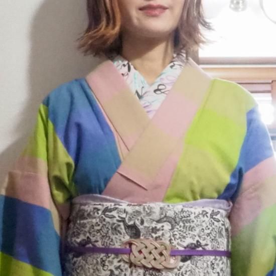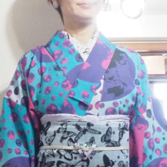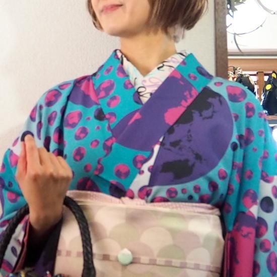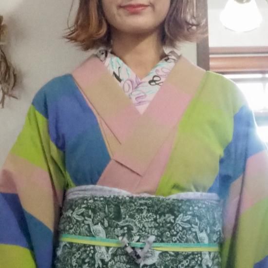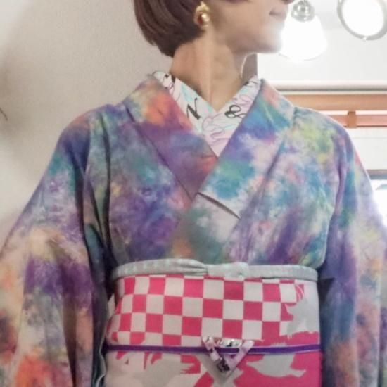 (右上)ポリエステルプレタ着物【ボタニカルレインボー】単衣/袷