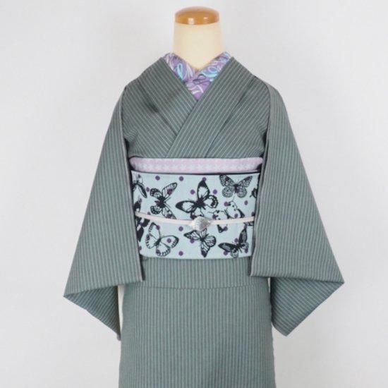 西陣織リバーシブル半幅帯【蝶ブルー×ボーダーブラック】