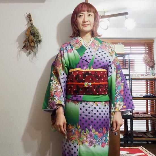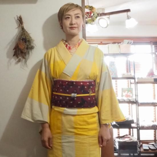 同じ着物でも、帯を1日目と2日目で裏返すだけで、全く違う着こなしになります。