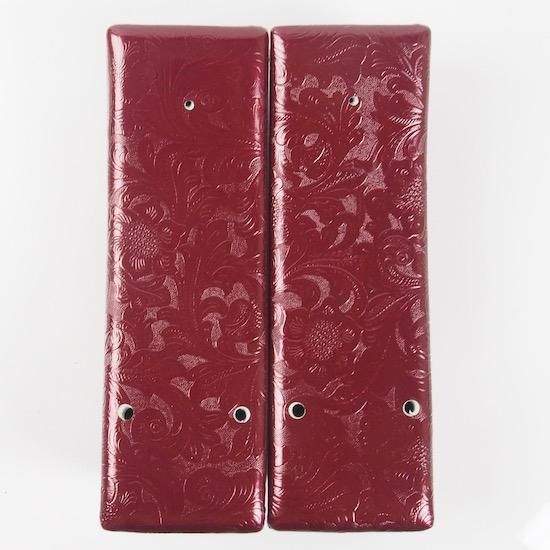 全体に唐花模様の型押しがされることで、シャープでフェミニンに。