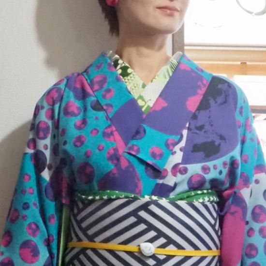 襟元につければ、模様の重なりが複雑に出て、カラフルで個性的。