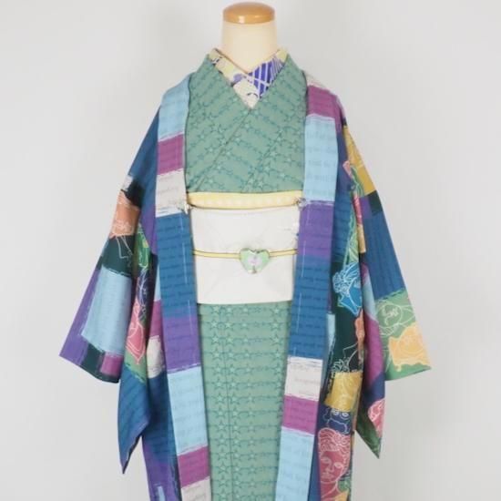 防染糊を置き、乾かし、染める、など複雑な工程を経る、型友禅の技法で染められています。