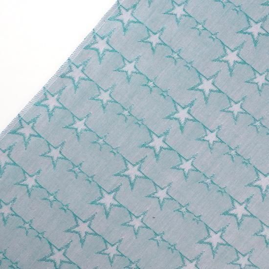遠目で見るとブルーに見えますが、近づくとグリーンの星柄が際立つ、複雑な色です。