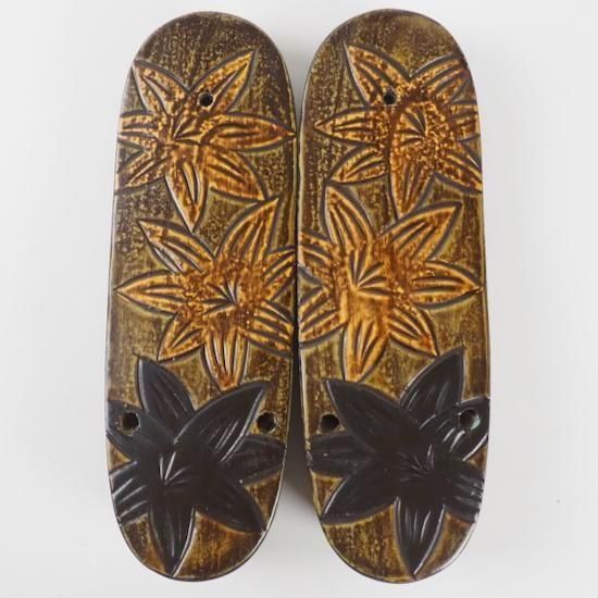 柄は履くと隠れてしまうので、鼻緒の邪魔をしません。意外と幅広い鼻緒と好相性。