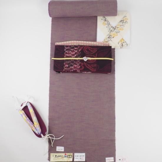 絣模様が特徴の久留米絣ですが、こちらの反物はあえて絣模様をつけず無地に織ることで、着回しやすくモダンな着こなしに合った反物となっております。