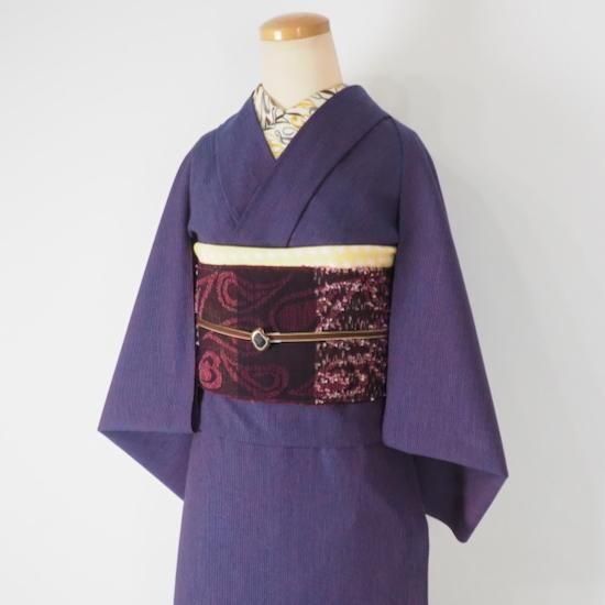 絣模様が特徴の久留米絣ですが、こちらの反物はあえて絣模様をつけず無地に織ることで、着回しやすくモダンな着こなしに合った反物となっております。