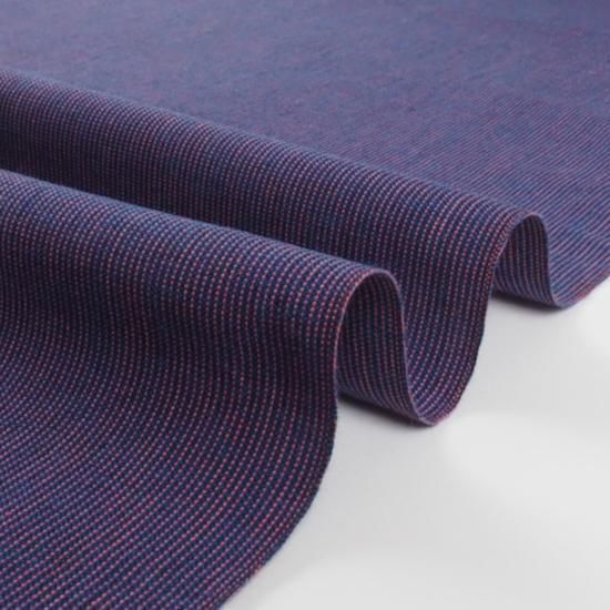 ネイビーとピンクの糸が交互に織られた、極細ストライプ。