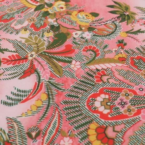 濃淡のあるピンクの地色が、明るい雰囲気。