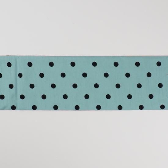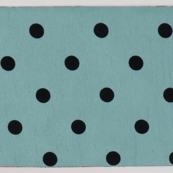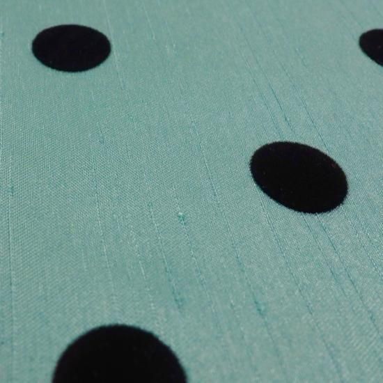 ミントグリーン地にブラックのドットがフロッキープリントされた、モダンで凝った生地です。
