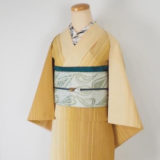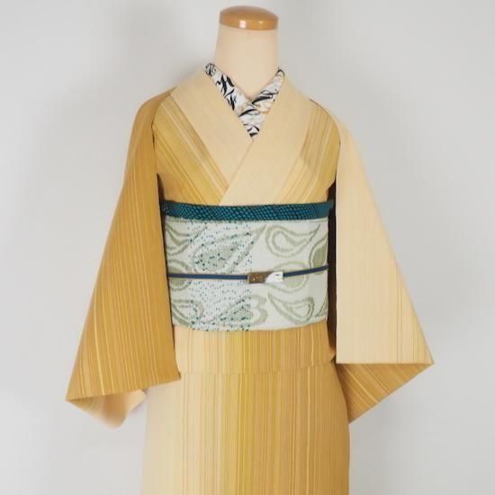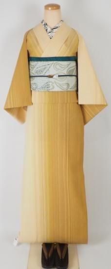 ライトイエローからマスタードへのグラデーションが美しい着物。
