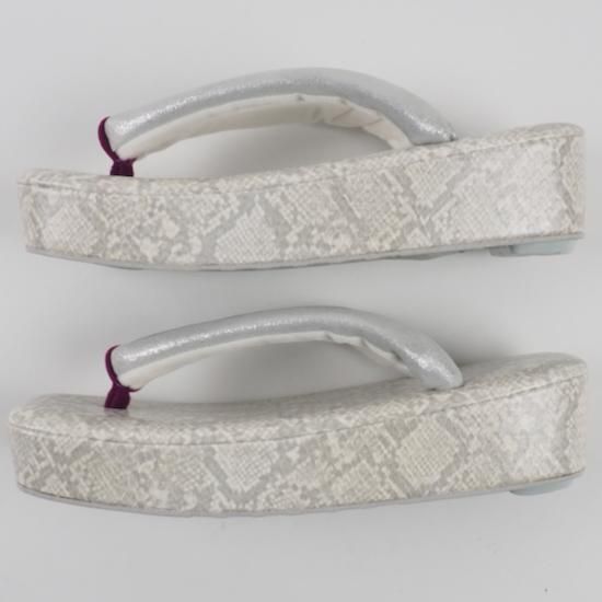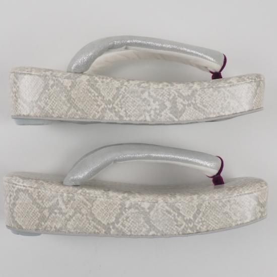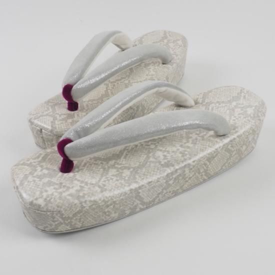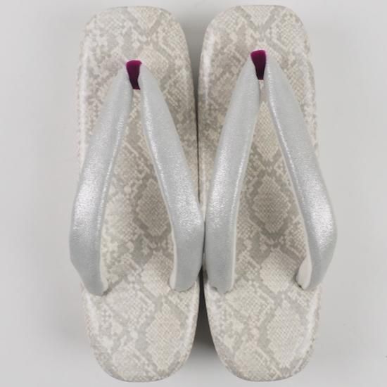 煌めきの強いシルバーレザーの鼻緒を挿げて、華やかに。