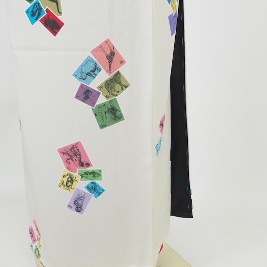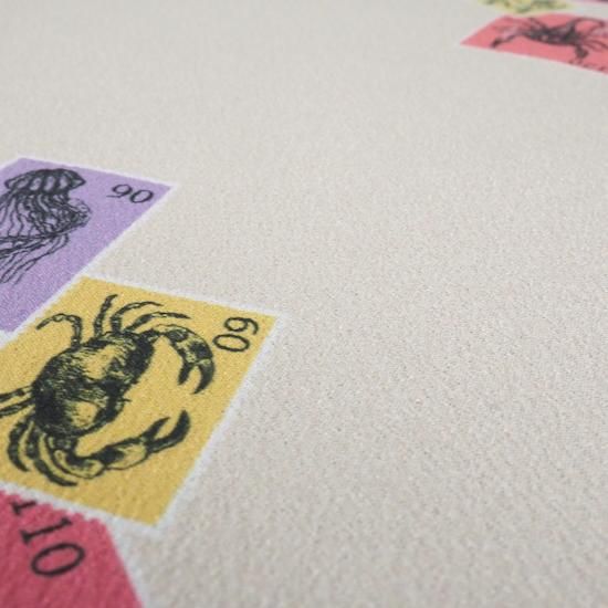 近寄ると、カラフルな切手柄が散りばめられた、遊び心あふれるデザインです。