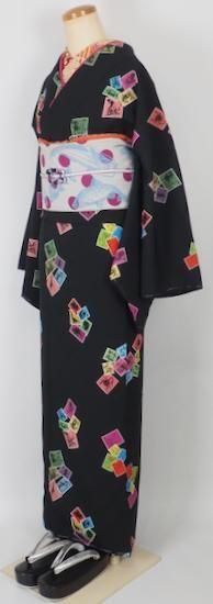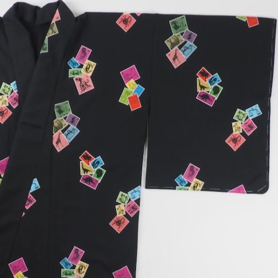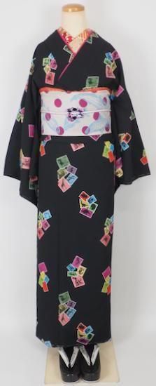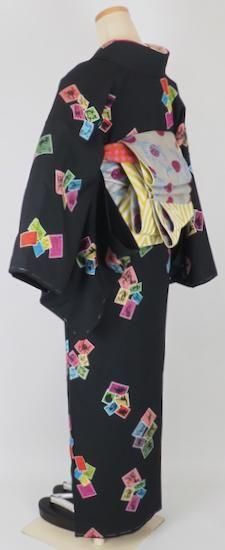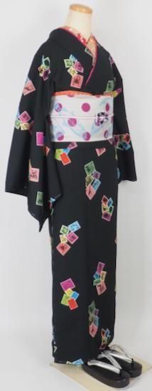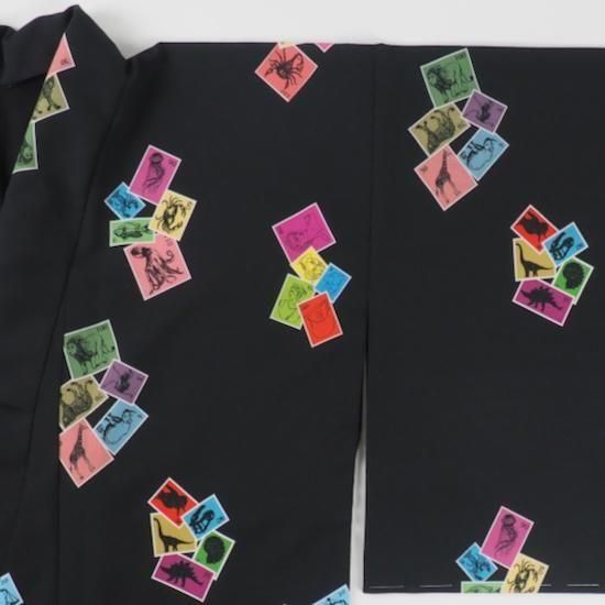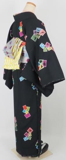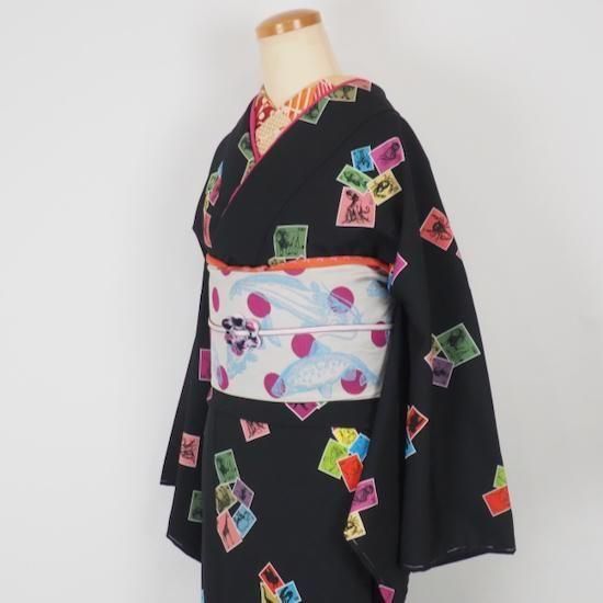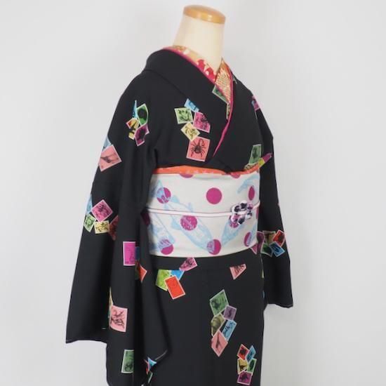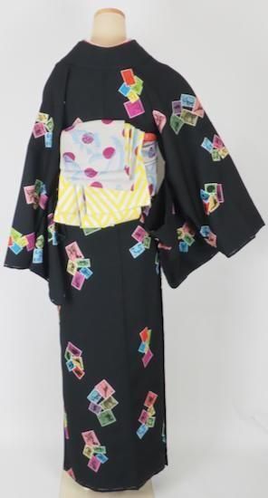 黒い着物はかっこいい着物が多いですが、こちらはポップ!