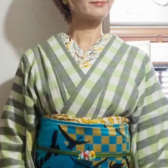シンプルな着物や上品なよそゆき着物を、モダンカジュアルにしたいときにぴったり。